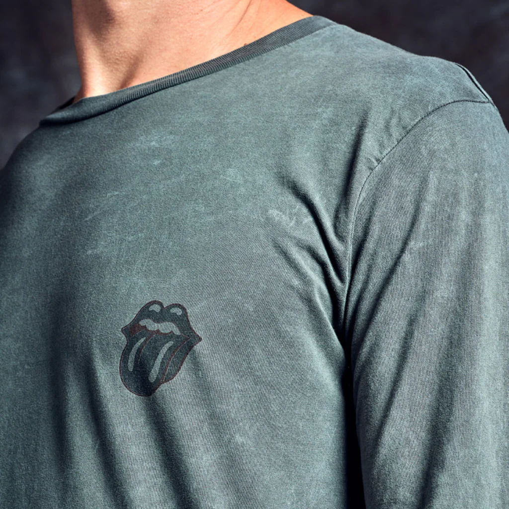 Exclusive to the No. 9 Carnaby Experience. The No. 9 Black Tongue & Script Long Sleeve is a washed black long sleeve t-shirt, featuring a black tongue logo on the front and a Stones No. 9 Carnaby logo screen-printed on the back.