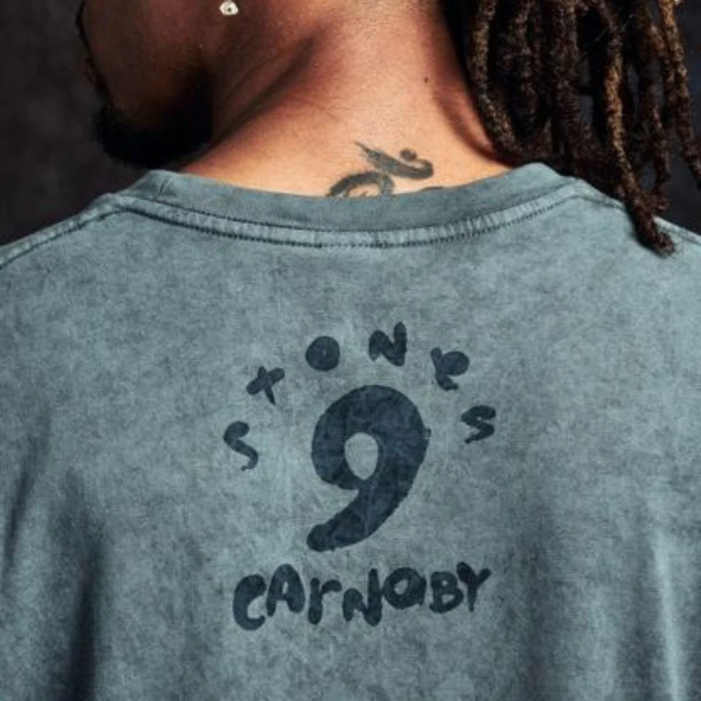 Exclusive to the No. 9 Carnaby Experience. The No9 Black Tongue & Script T-Shirt is a washed t-shirt, featuring a black tongue logo on the front and a Stones No. 9 Carnaby logo screen-printed on the back.