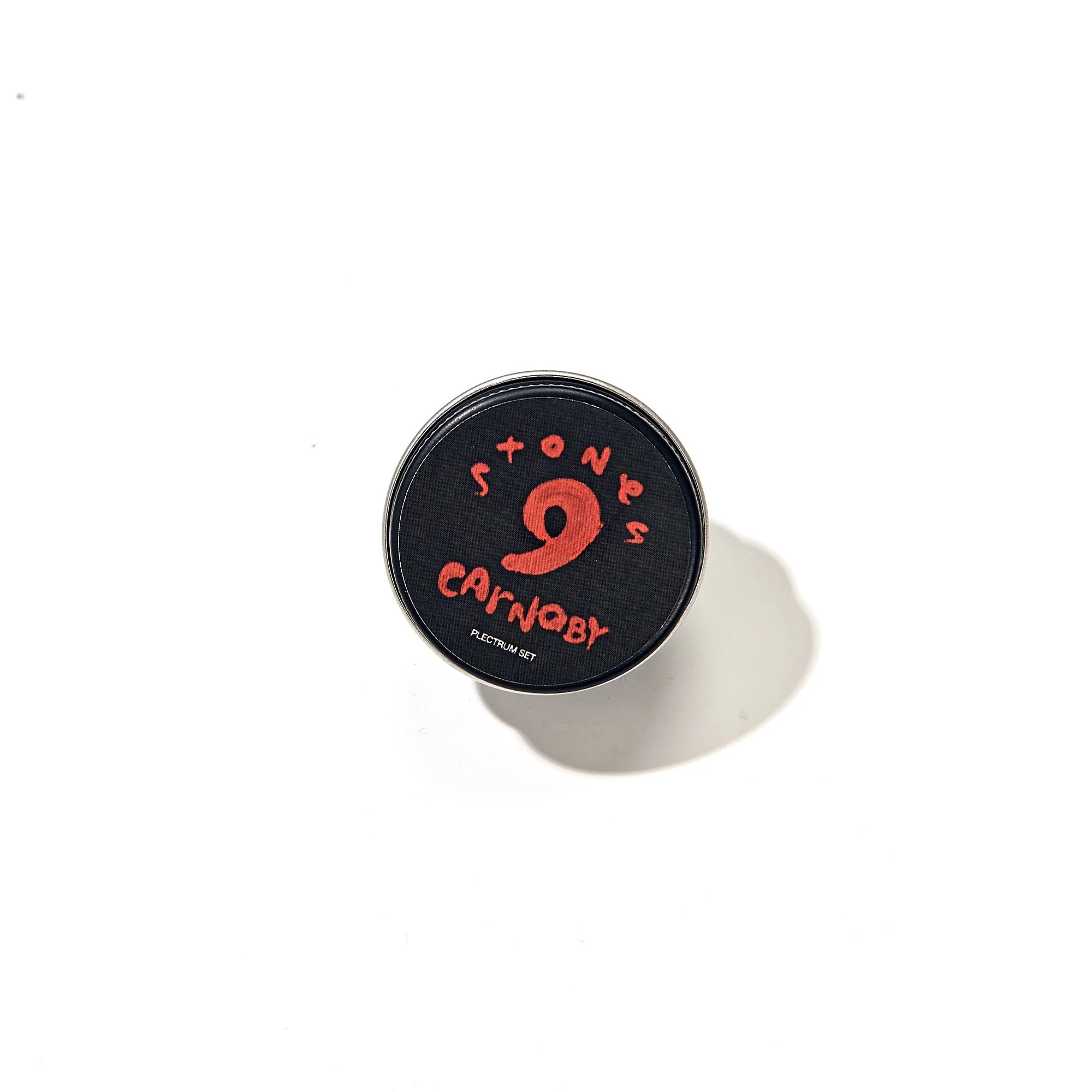 Exclusive to the No. 9 Carnaby Experience. The No. 9 Tinned Plectrum Set is a set of five guitar picks, each featuring a Stones No. 9 Carnaby logo.