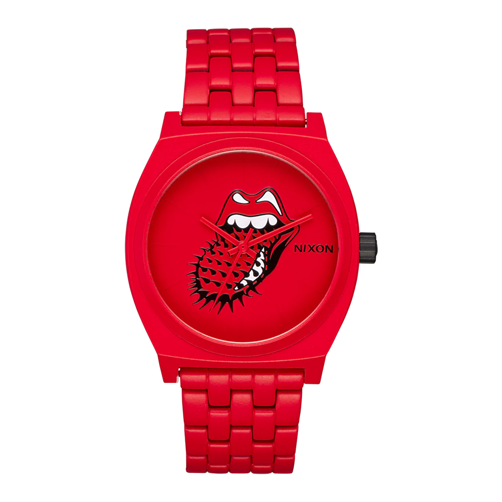 An icon of Nixon heritage riffs with the legacy of the Rolling Stones. The simple yet sophisticated design plugs into the never-ending youthful heyday of the rock-and-roll legends, while its 10 ATM / 100m water rating means getting wet is no big deal. Itâs always down to jam and with a full spectrum of finishesâclassic Tongue on the classic gold, hourly on midnight black, or spikey on vibrant redâthereâs a Rolling Stones Time Teller for you.